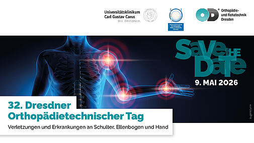 Am 9. Mai 2026 findet im Universitätsklinikum Dresden unser 32. Dresdner Orthopädietechnische Tag statt. Themenschwerpunkt ist die Behandlung von Erkrankungen und Verletzungen der oberen Extremität.