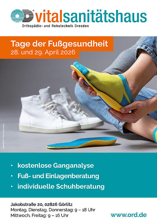 Im Vital-Sanitätshaus Görlitz findet am 28. und 29. April 2026 die Tage der Fußgesundheit statt. Wir bieten Ihnen: