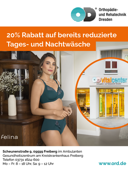 Nur für kurze Zeit bieten wir Ihnen in unsere Filiale in Freiberg 20% Rabatt auf bereits reduzierte Tages- und Nachtwäsche.